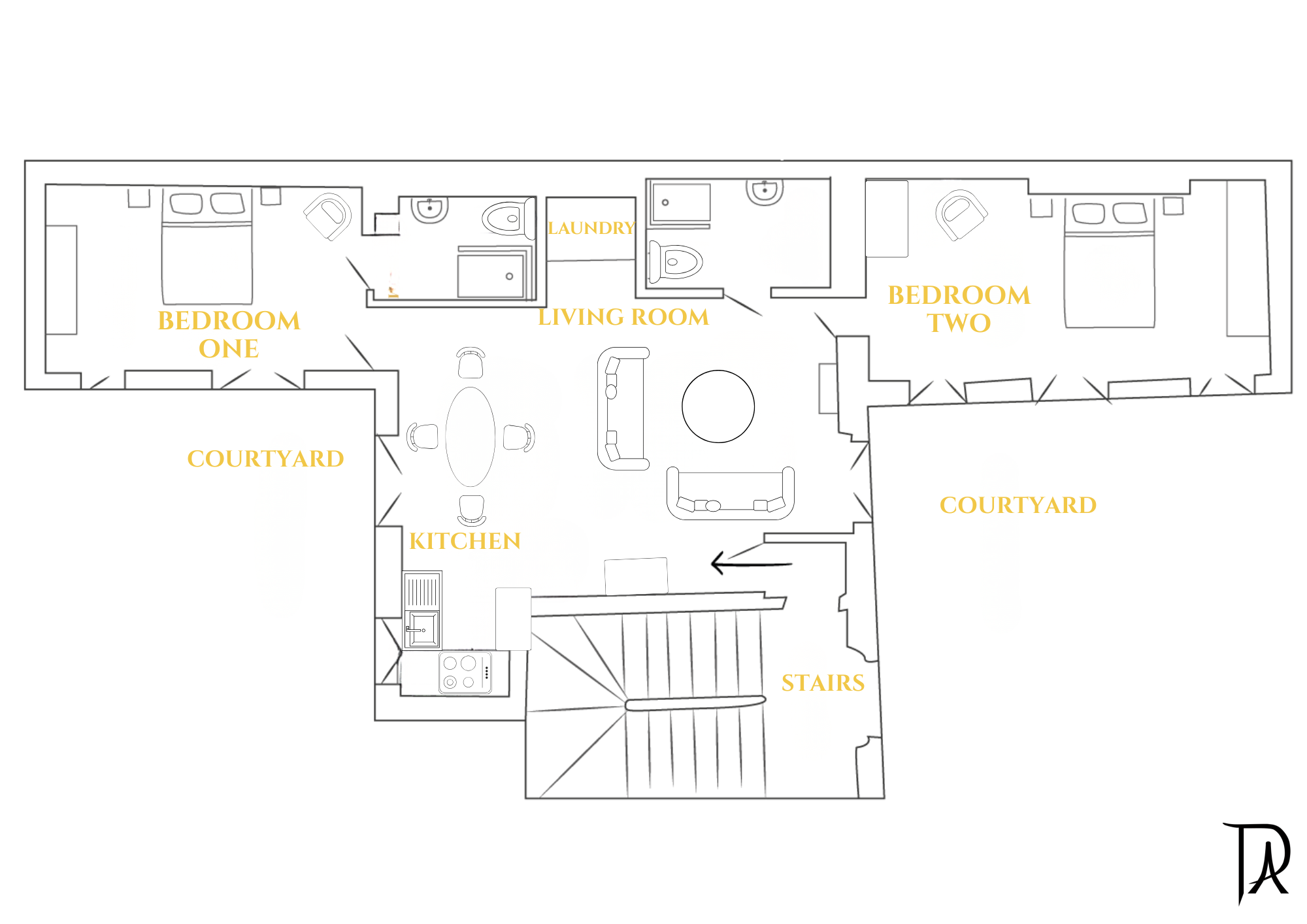 My husband and I stayed in this apartment with our two adult daughters. We found it to be a perfect size for 4 adults and both bedrooms were well furnished with comfortable mattresses and nice linens. The apartment faces a courtyard so was very quiet. The bathrooms were large and were supplied with lots of good quality towels and bathrobes. The washer and dryer were separate and in a common area so all could access them easily. The floor plan was open with very high ceilings and was quite comfortable and tastefully decorated. We appreciated the use of a laptop and free wifi and would definitely stay here again. The service was excellent both checking in and out. We had no reason to contact the staff during our stay.All of us would rate our stay a 10 for service, value, and attractiveness.