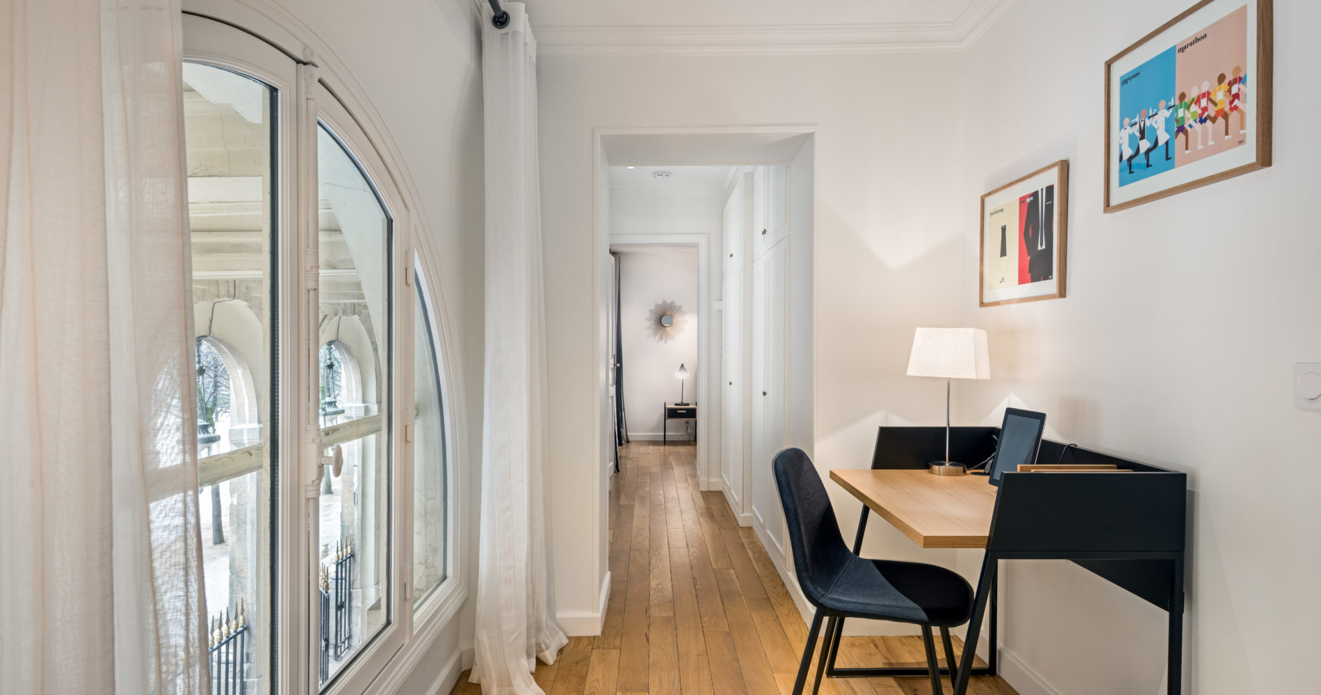 A truly unique experience. This very modern and elegant apartment within the Palais Royal is a real treat. The Palais Royal is a palace located opposite the Louvre and a few steps from Opera. A prime location in the very heart of historical Paris. Through time, it’s inhabitants include prominent figures such as Cardinal Richelieu, King Louis XIII, Louis XIV and the Bonaparte family.