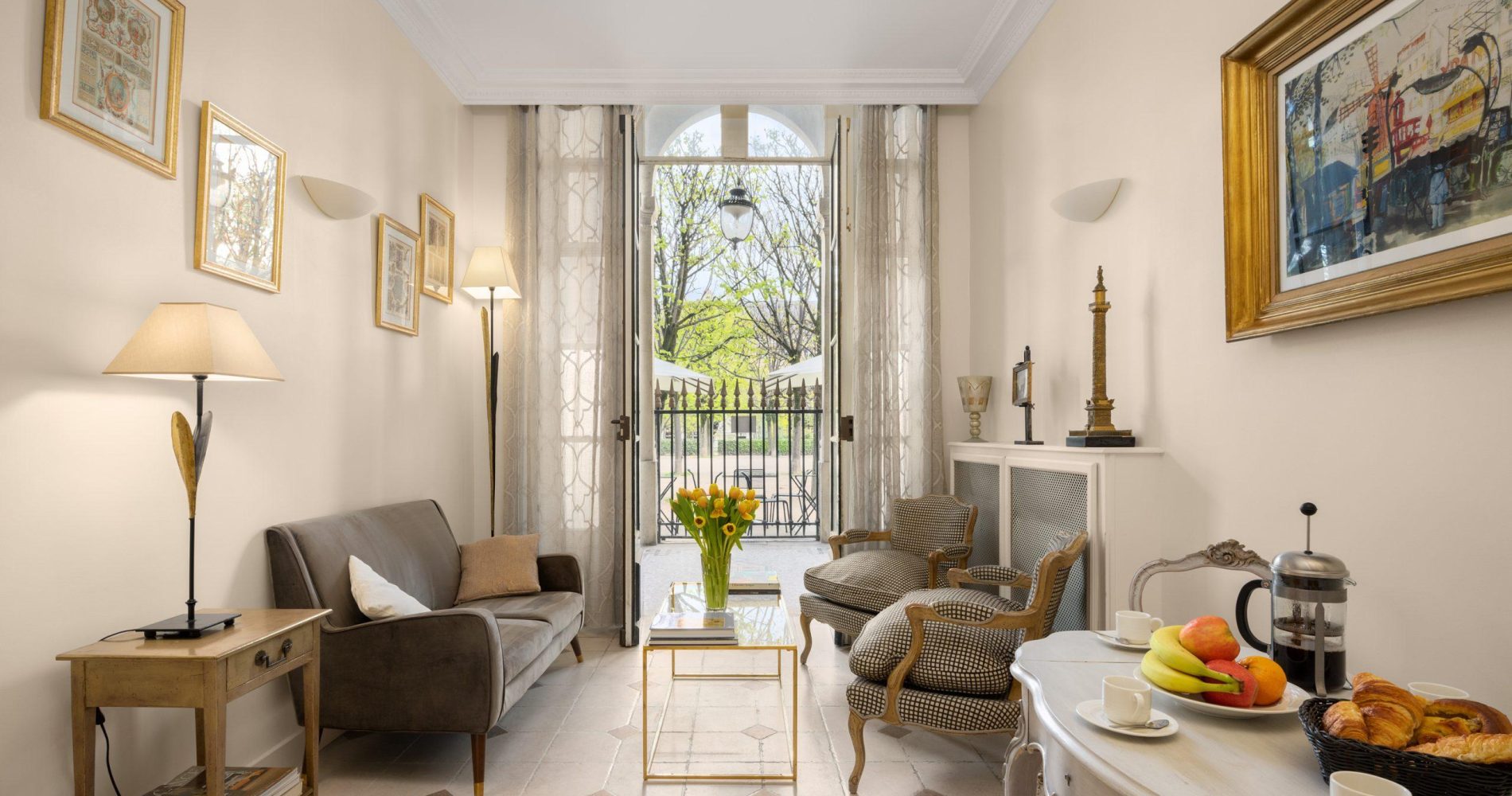 A truly unique experience. This cosy apartment within the Palais Royal opens directly onto the gardens through the living-room. The Palais Royal is a palace located opposite the Louvre and a few steps from Opera. A prime location in the very heart of historical Paris. Through time, it’s inhabitants include prominent figures such as Cardinal Richelieu, King Louis XIII, Louis XIV and the Bonaparte family. This charming apartment is situated directly on the gardens of the historic Palais Royal, just a stone’s throw from the Louvre. Decorated with antique furniture, this flat is an ideal spot for a family, two couples or simply friends traveling together who want to experience living like “real” Parisians. The beautiful gardens outside your door are perfect for children to play in and adults to stroll in. The combination of antiques, French windows and stylish renovations create old-world charm with modern comforts. This cosy apartment has two bedrooms and one bathroom with two WCs, one of which is separate, a cute living room and a fully equipped kitchen. A perfect hideaway that has been modernized to give maximum comfort and to make your stay “très cosy”. Settle in, relax and enjoy your stay in this romantic city.