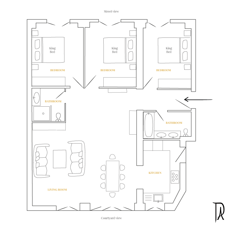 Great apartment – well appointed with quality furnishings, linens and kitchen appliances. Great washing machine and dryer. Well laid out apartment with 3 good size bedrooms all with king beds. A pretty view into the courtyard. The apartment is in a quiet neighbourhood – even the renovations across the road did not disturb. Would definitely stay here again. Excellent communications with the agent and staff.