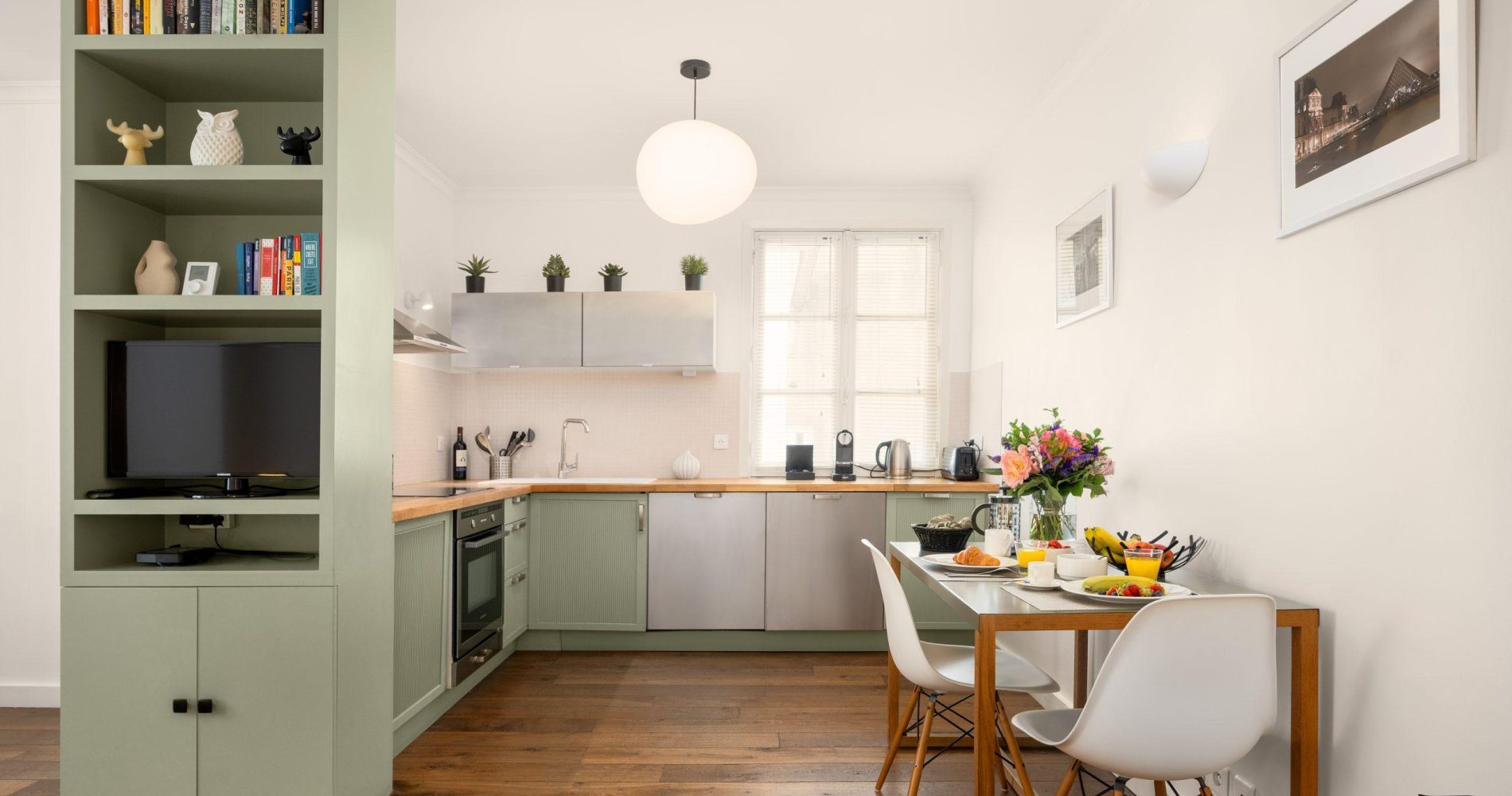 This was an absolute ideal place to stay. A few steps from the Seine River, right across from the Louvre, and also just a couple of hundred metres from the Musée d’Orsay to the West and a short walk South to the Luxembourg Gardens. From no point of departure could Paris be more walkable! The apartment itself is elegantly decorated in neutral colours and feels spacious and light. Lovely big bathroom as well. Super clean. The PVA company (it was my third time in one of their places) certainly know what they are doing and are committed to high standards and great service. The fresh flowers they provide is the icing on the cake. Fred was our greeter and he is ultra nice. Highly recommended, both company and this particular, very Parisian apartment.