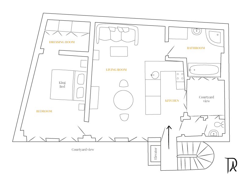 This enchanting apartment is located in a classic late 1800s building a short walk from Boulevard Saint Germain next to the Seine river and the famous “Pont Neuf” bridge across from the Louvre. An elevator takes you up to this lovely one bedroom apartment with a splittable king size bed and a sofa bed in the living room, one bathroom and equipped kitchen. It has been entirely and elegantly renovated to create the perfect space to make your stay so very enchanting.