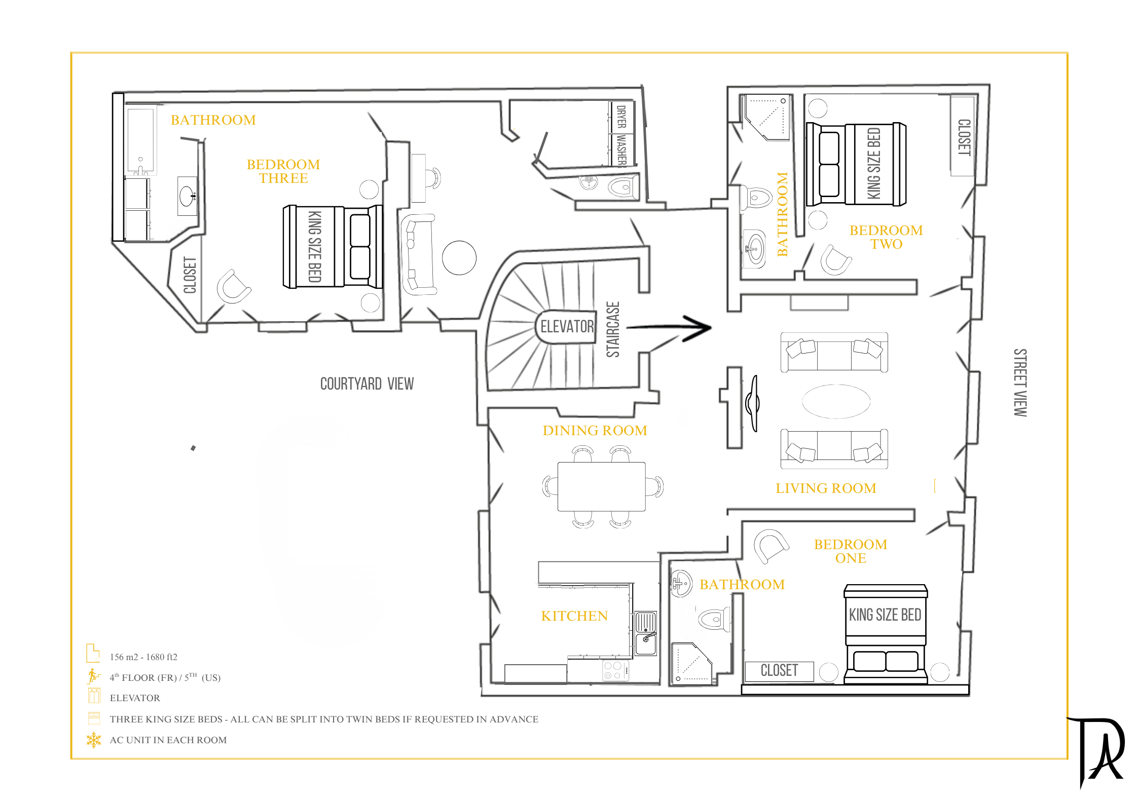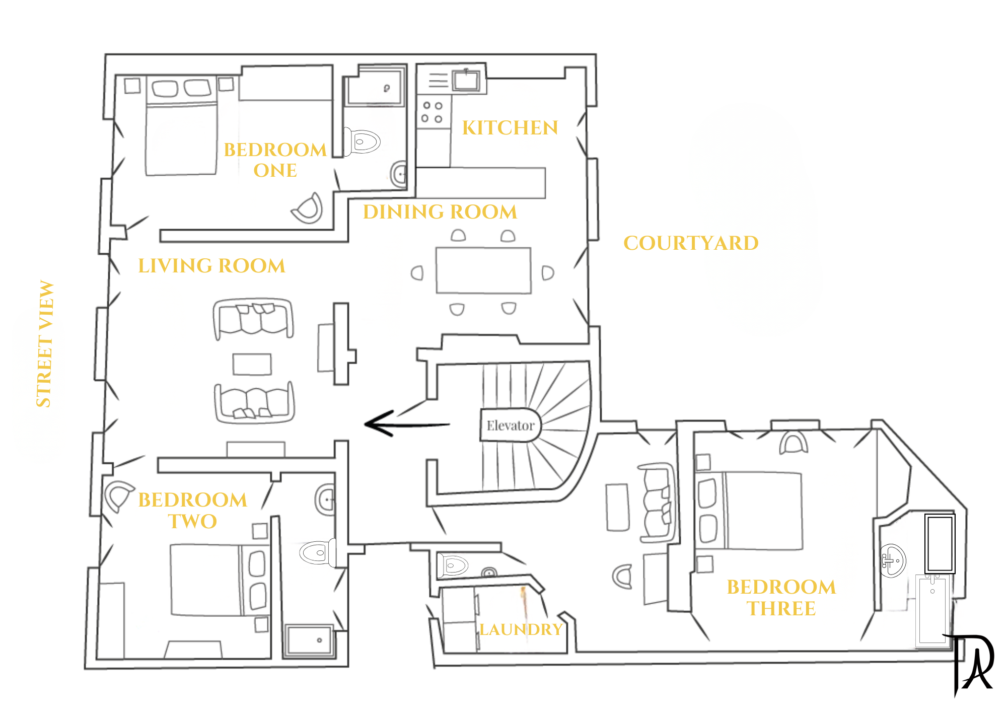 This apartment is truly incredible and perfect for a large family or multiple couples, as each room has it’s own en suite, two with a toilet inside and one with a toilet just outside in the study area (but could technically be reserved for that room if needed). Yes there are lots of stairs, but the small lift works great for anyone with mobility issues. It’s beautifully vintage, so treat with care, but it works great. The common areas are all fantastic and the kitchen and bathrooms were all extremely well equipped. Communication was great. The very best part of this apartment is its location. In beautiful Saint Germain, but just a block in from the Seine so you can still walk over to the Louvre and all surrounding spots. We would definitely love to stay here again on our next visit to Paris.